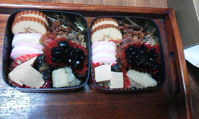 元日は好きな物が入った一人用おせちとお雑煮でお祝い。あとは、すき焼き、海鮮丼、エビの姿焼、ケーキ等スペシャルメニューで盛りだくさん。